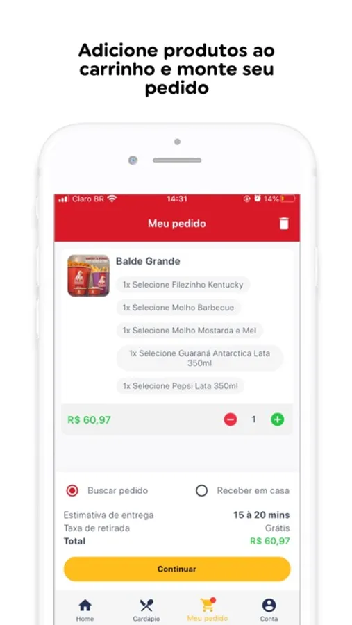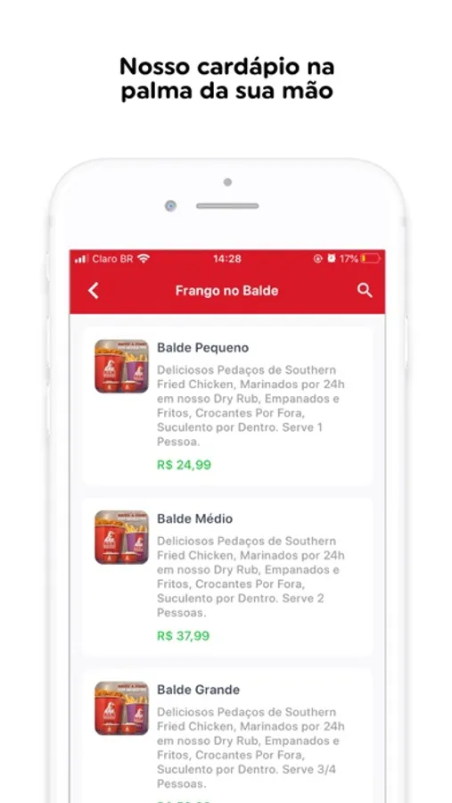 No app, você encontra de forma rápida o cardápio completo e ainda pode utilizar a ferramenta de busca para localizar diretamente os produtos que você deseja.