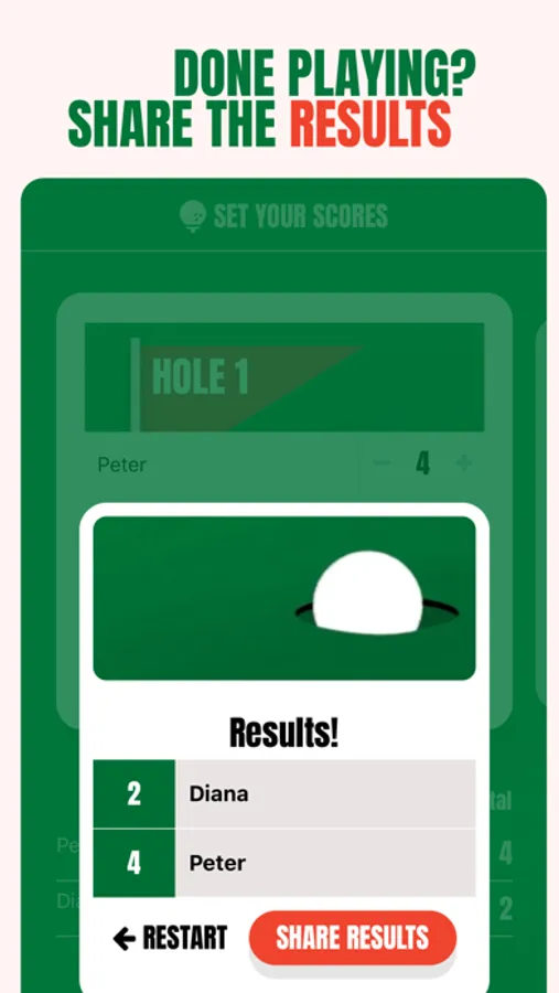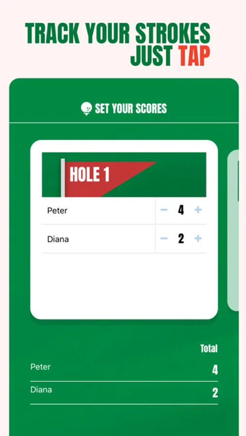 A paperless hole score counter is the ideal tool to keep track of your strokes on the golf course without having to write them down. With the counter you can keep your score for 18 holes for each hole separately or for you and your fellow players for 9 holes.
