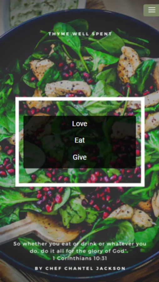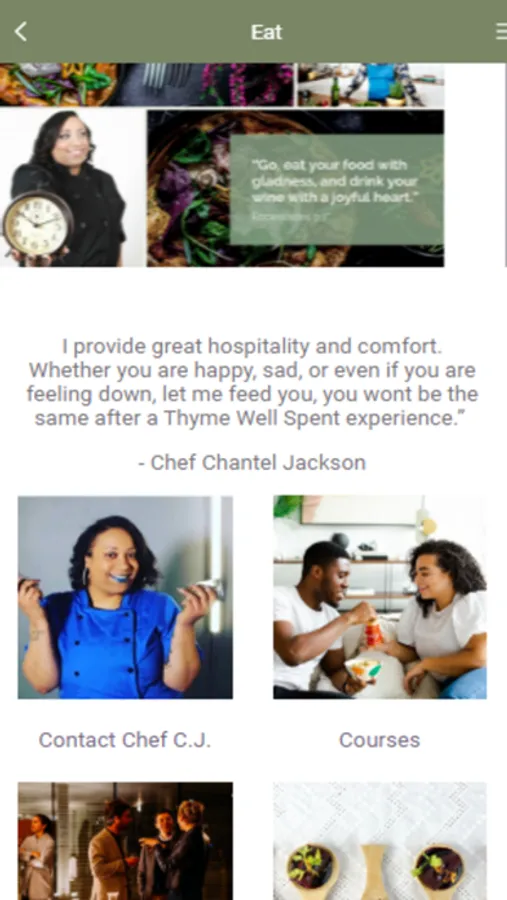 I provide great hospitality and comfort. Whether you are happy, sad, or even if you are feeling down, let me feed you, you won't be the same after a Thyme Well Spent experience.” - Chef Chantel Jackson Download The Thyme Well Spent App Today!