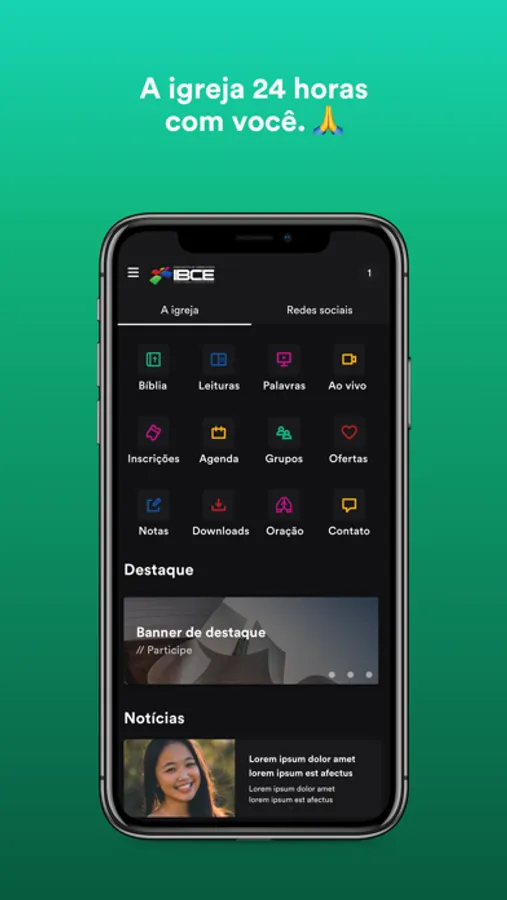 - Siga a agenda e fique por dentro de tudo que acontece na igreja, inscreva-se em eventos e tenha seus ingressos sempre com você.