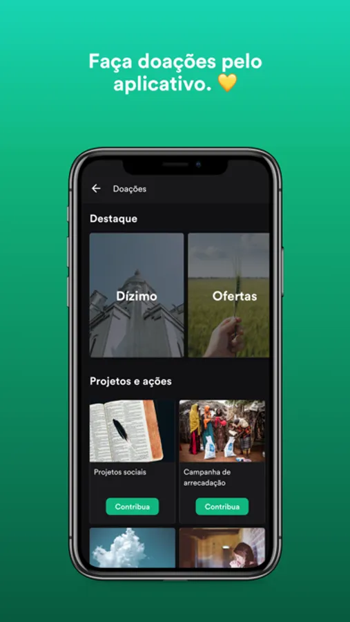 - Conecte-se com a igreja através dos grupos de interesse, receba conteúdo direcionado e obtenha sua carteirinha exclusiva.