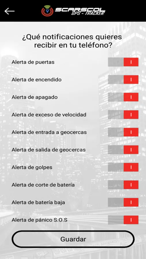 Con SCARSCOL podrás además de rastrear tu vehículo, apagarlo remotamente, recibir alertas de apertura de switch o llave, apertura de puertas, golpes, exceso de velocidad, entrada/salida de geocercas entre muchas otras opciones.