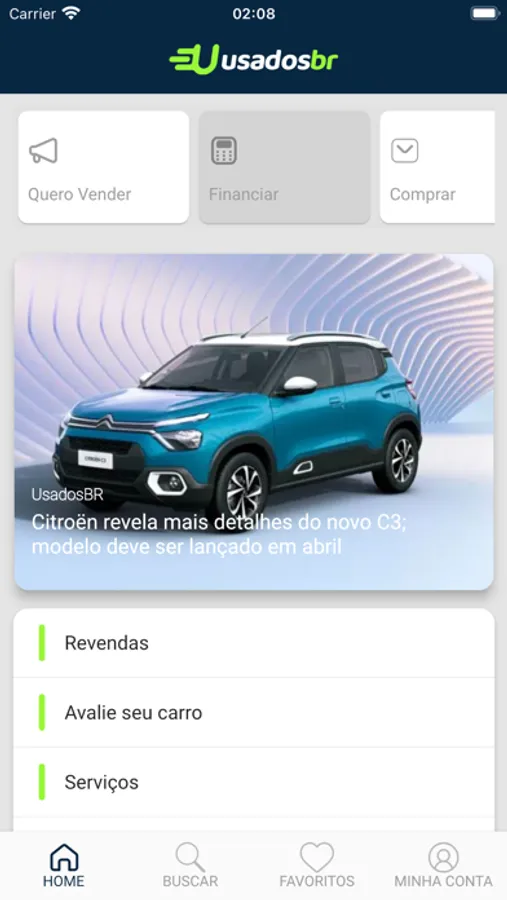 - Opção para salvar seus veículos favoritos e receber alertas de novas ofertas.
