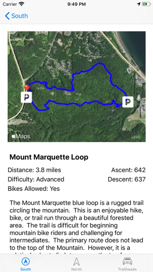 Marquette's South Trail network is recognized as a world class mountain biking destination. These trails are incredible and getting better every year. The app features all of the standard routes and many recent additions.