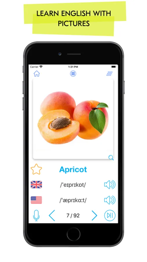 "English 50.000 Words with Pictures" app is perfect for Beginner, Pre-Intermediate , Intermediate and Upper-Intermediate levels. Start with basic words and topics, and Learn new words daily! Review learned words and topics with flashcard, test and listening tasks features.