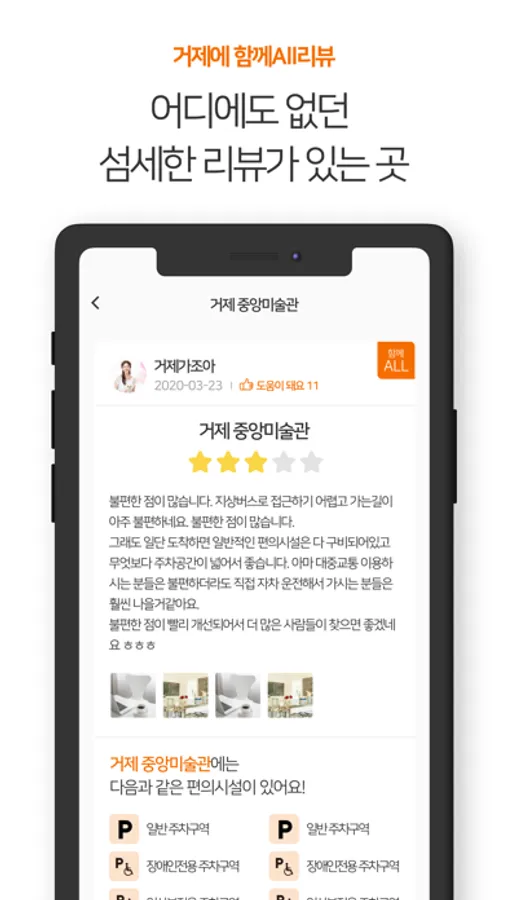 함께all거제(함께올거제)는 다양한 유형의 장애인과 노인•임산부등의 대상자에게 유용한 거제시장애인편의시설을 GPS와 카테고리 검색등을 활용한안내,무장애관광코스안내등 거제시장애인편의시설에 관련된 다양한정보를 제공하여 지역내 이용자뿐만아니라 관광객들에게 필요한정보를 제공하는 모두가 함께할수있는 어플리케이션(함께올거제)입니다.