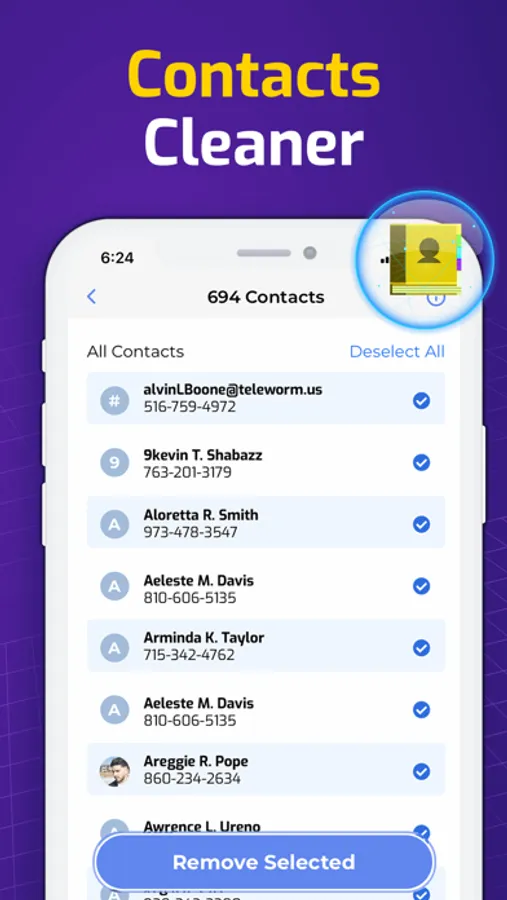- Contact Cleaner- Manage multiple contacts, merge duplicates and identify incomplete contacts and remove them in one click.
