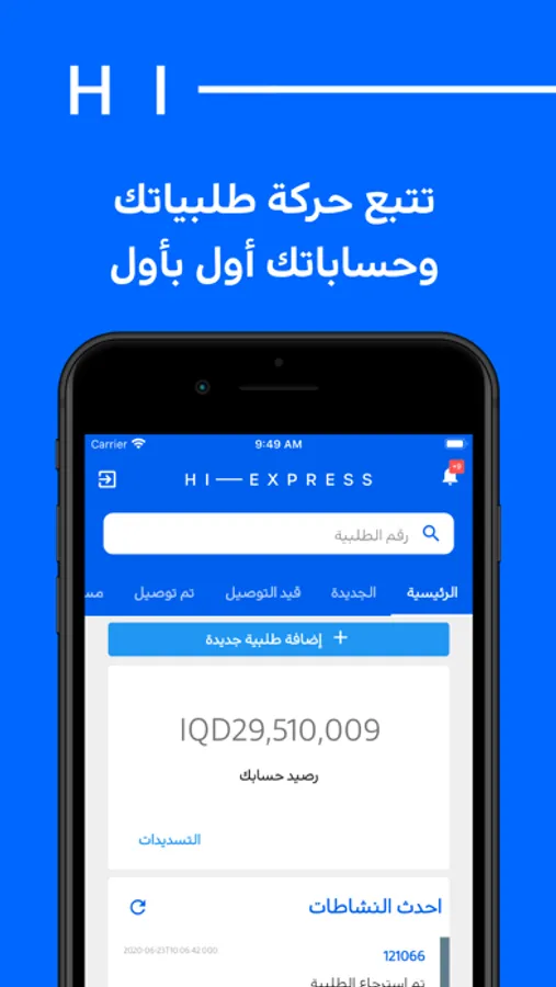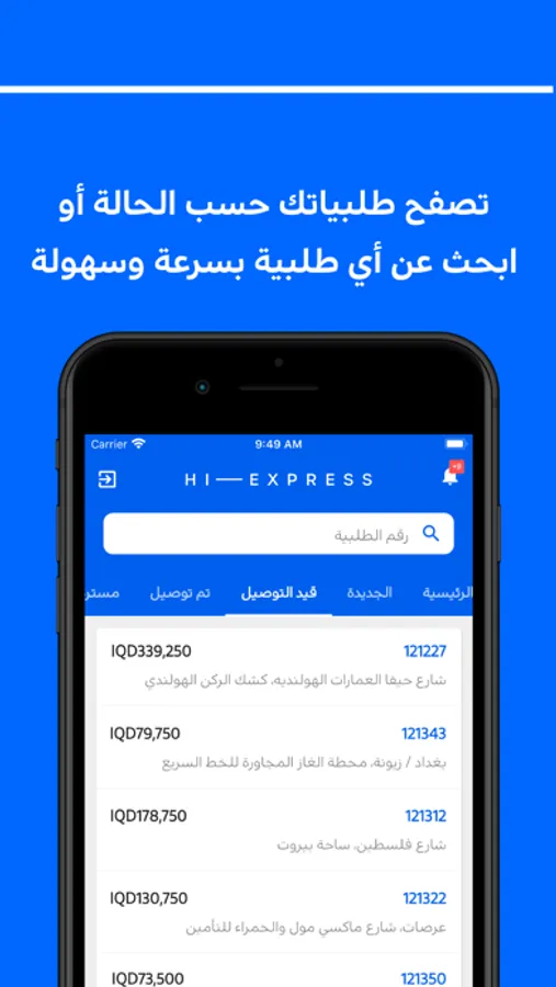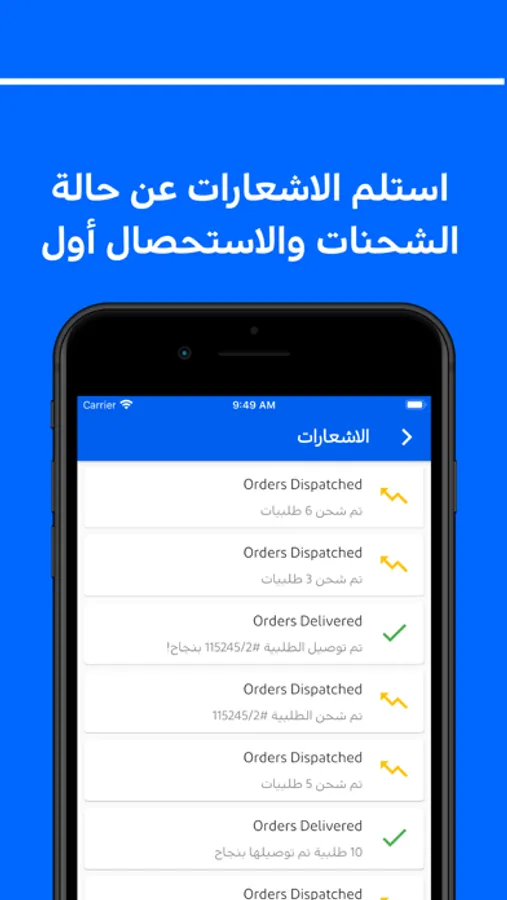 - متابعة آنية للشحنات حسب الحالة (جديد، قيد التوصيل، تم التوصيل والمسترجعات)
