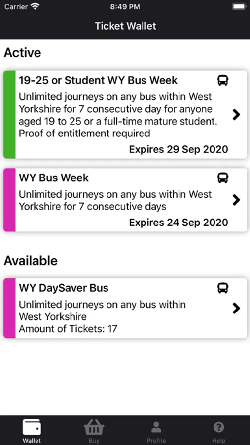 All MCard tickets are accepted on all operator services in West Yorkshire, including First, Arriva, and Transdev.