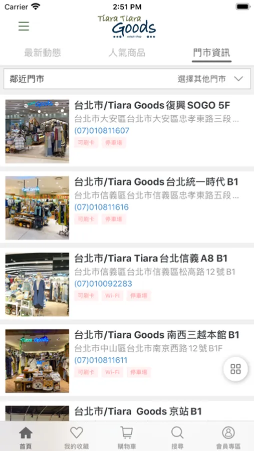 除此之外,還有門市資訊、官方社群帳號連結等豐富品牌資訊。