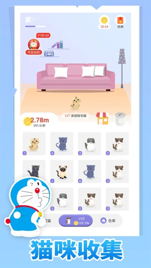 日常陪伴小猫咪,在线陪玩小游戏,数百种猫咪种类等你升级合成,猫咪修炼养成记