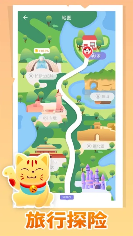 带着心爱的小猫咪踏上旅程,随着小猫咪的成长和升级,旅行的速度也会更快,旅途中享受小猫咪的陪伴见证它的成长同时也能获得意想不到的福利!