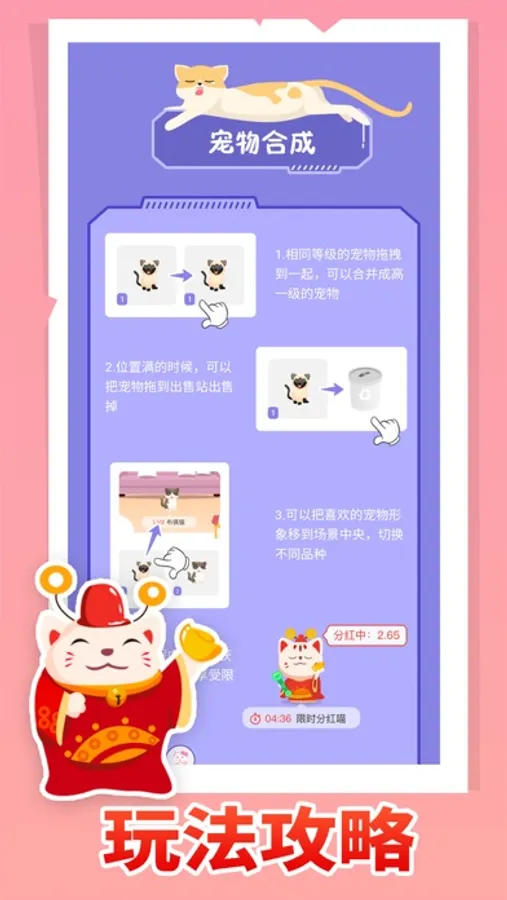 合成分红猫咪时时刻刻都在赚金币,级数越高金币越多,奖励拿到手软!