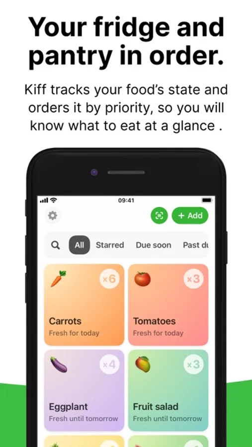By eating fresh food, you waste less, save money, and help the planet. With a unique UI and beautiful details, Kiff is the perfect companion in your journey to reduce food waste at home.