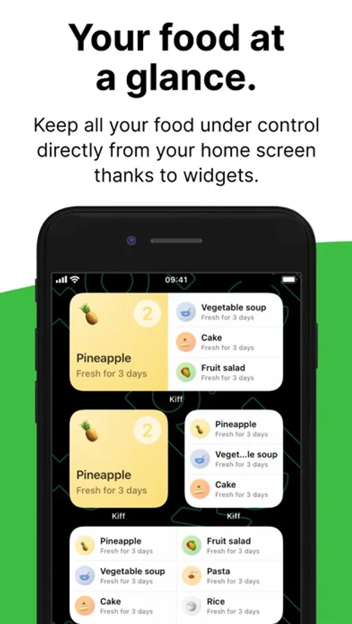 • Alerts, always on time. Kiff will notify you when your food is due soon.