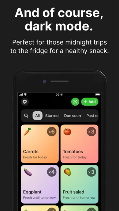 • All your groceries and leftovers in one app. Always in sight, so you know what to eat at a glance.
