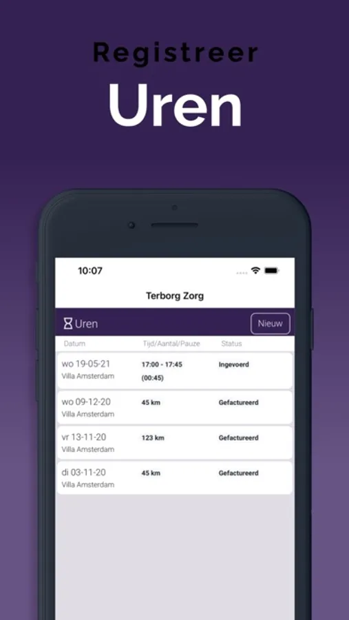 Met deze App kan je als flexwerker van Terborg Zorg o.a. diensten en opdrachten bekijken en accepteren, gewerkte uren registreren, facturen opstellen en verzenden, urenstaten en de agenda inzien.