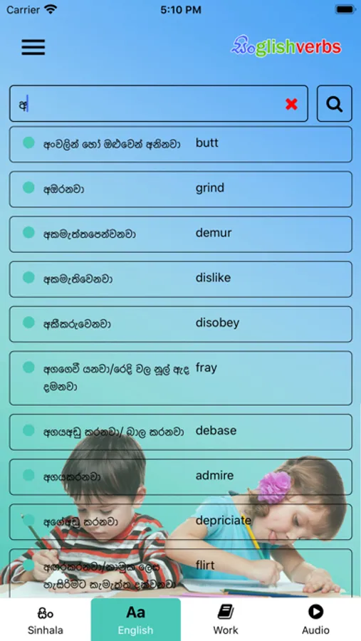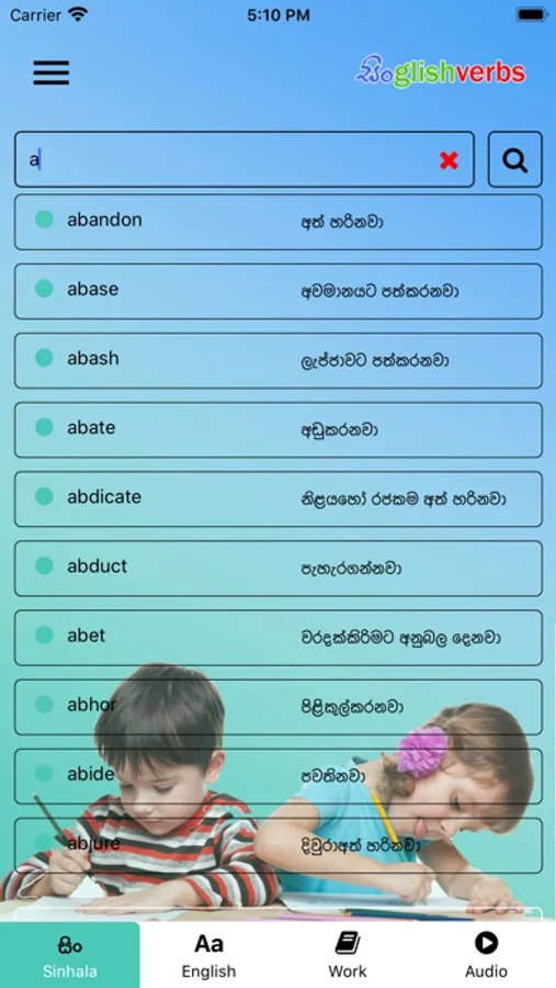 Sinhala and English verbs of day to day using words. You can find the verb, Sinhala meaning, past tense, past participle, present tense and continuous form of any word using this app. This app includes more than 3000 daily using words.