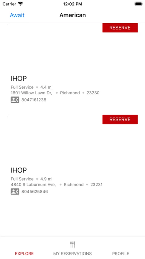 AWAIT App is designated for restaurant guests/customers. It allows guests/customers to download apps in their cell phone and send request to specific restaurant to be added in the waiting list. Guests/customers receive alert notifications from the restaurant in their cell phone when they are ready to be seated in the restaurant.