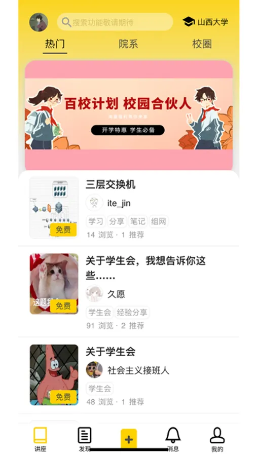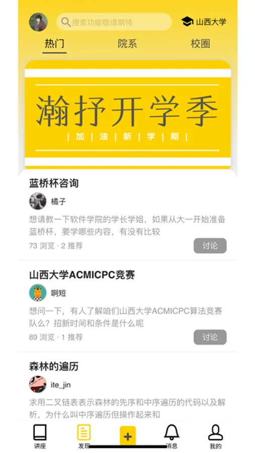 瀚抒针对大学生缺乏学业咨询应用场景的现状,基于学校划分用户群,通过大数据AI算法将同省、同市、同校、同学院、同专业的大学生汇聚在其所属的精准用户圈内,为C端大学生提供了一个校内闭环生态圈的学业经验分享平台,并且提供文章讲座、问答的具体功能。致力为学生用户提供校内知识生态圈,帮助大家发现校内的牛人。