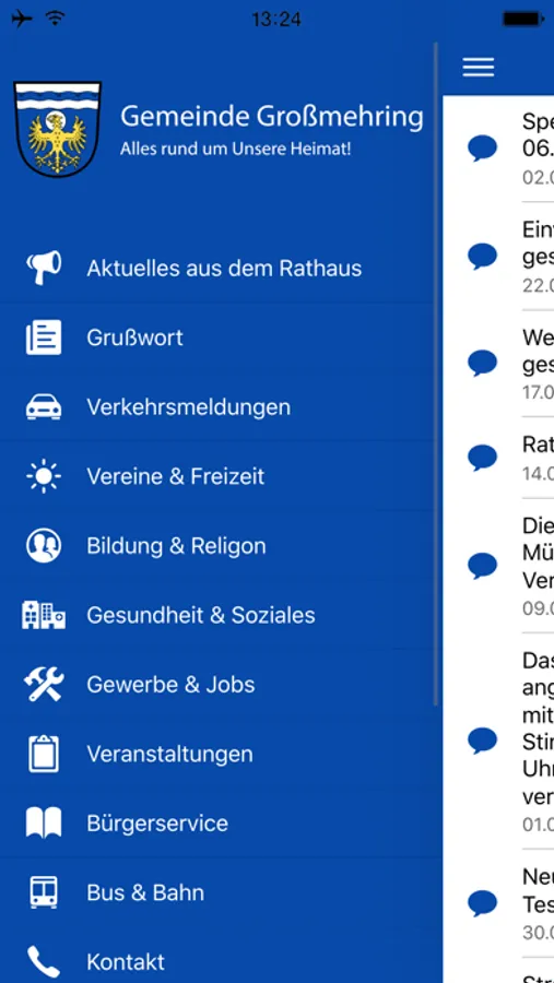 Mit dieser App erhalten die Bürgerinnen und Bürger aus Großmehring alle notwendigen und wichtigen Informationen aus Ihrer Heimat direkt auf das Smartphone!