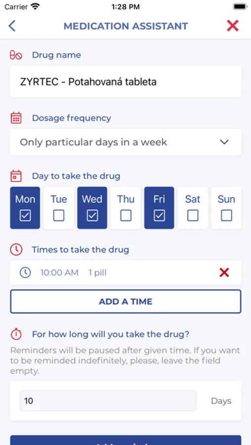 If you want to be certain that you will not forget to take your prescription medications, the medication assistant will help you. It will assist you with maintaining an overview of the dosing of your medications and remind you to take them at the right time. You can also check for drug interactions and food allergies associated with prescription medications.