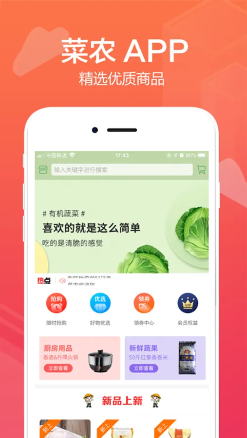 菜农APP是一款掌上购物应用。菜农APP主要为用户提供生鲜蔬菜,肉食,粮油等商品在线购买服务,支持商品批发,全程冷冻送货上门。