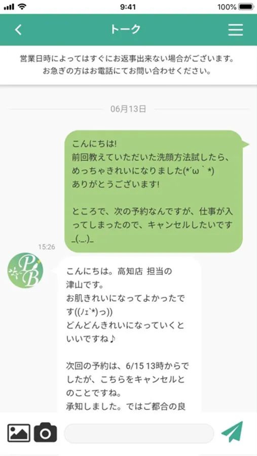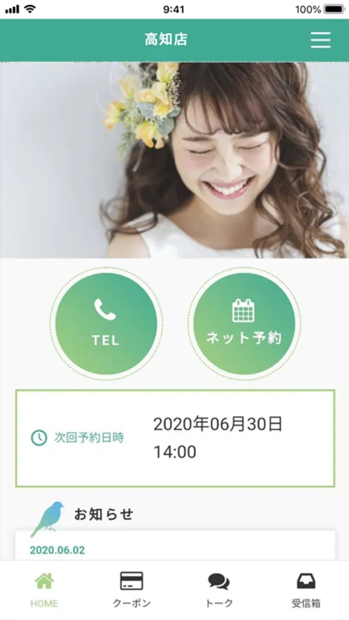 次回のご予約をされている場合は、アプリを起動後、最初のページに、次回のご予約日が表示されます。