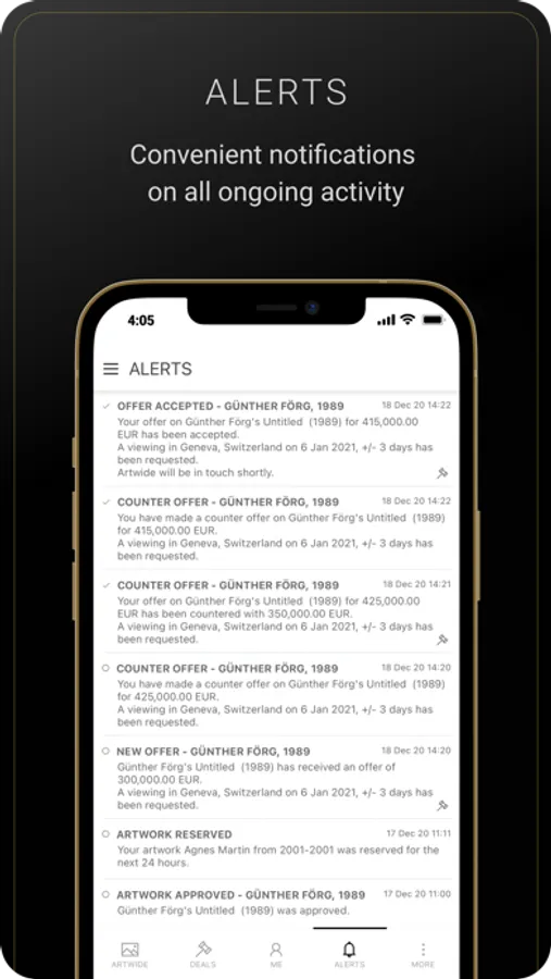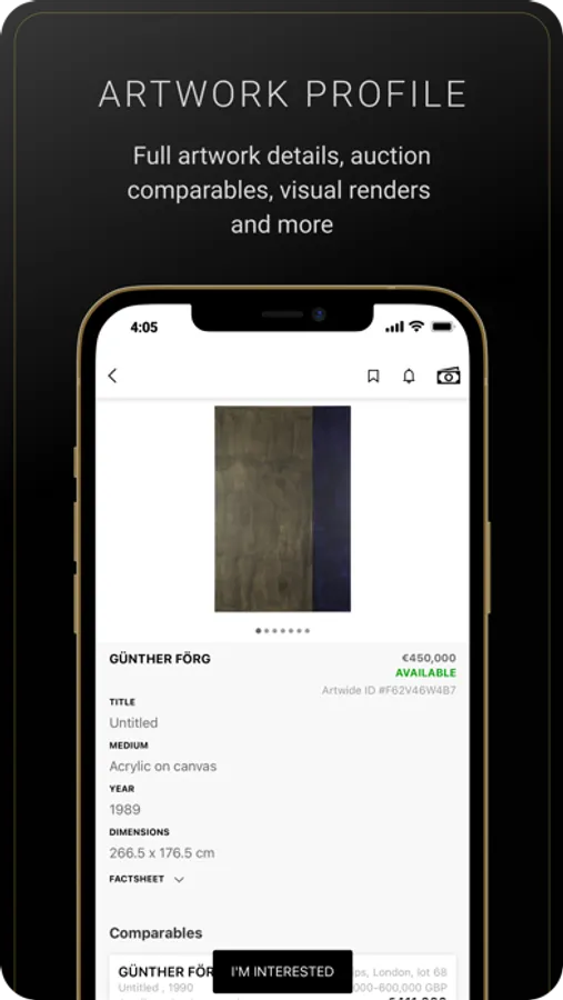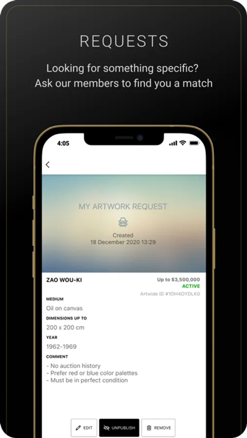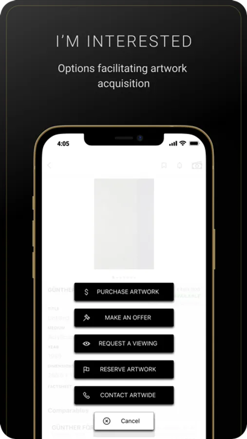 Artwide provides an app to buy and sell artworks to an identified and vetted community of members, where each member is verified by the Artwide team.