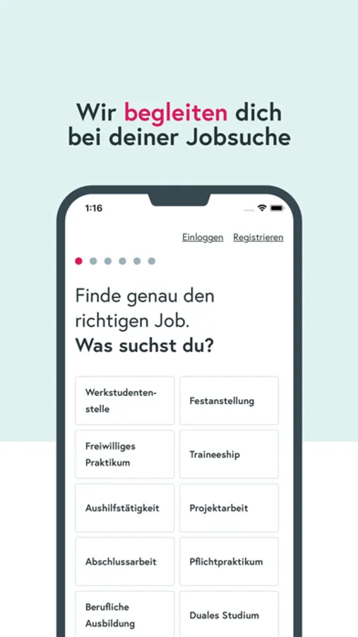 - Lass dich finden: Du entscheidest, ob du von Unternehmen auf unserer Plattform gefunden werden möchtest oder nicht.