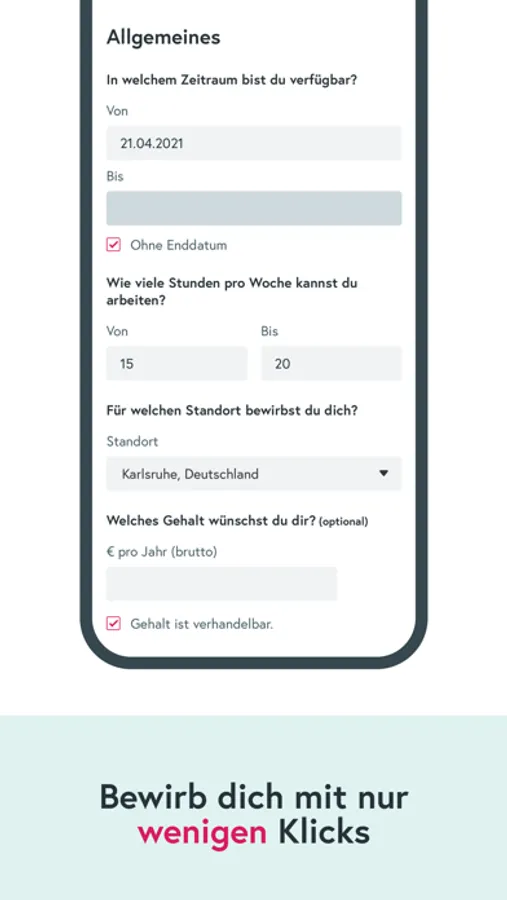 Jobsuche und Bewerbungsapp in einem: Finde passende Jobs und bewirb dich in wenigen Minuten. Du füllst dein Profil einmalig aus und kannst dich damit in kürzester Zeit auf mehrere Jobs bewerben. Gerade keine Zeit? Dann setze das Jobangebot auf deine Merkliste und bewirb dich, sobald es dir passt.