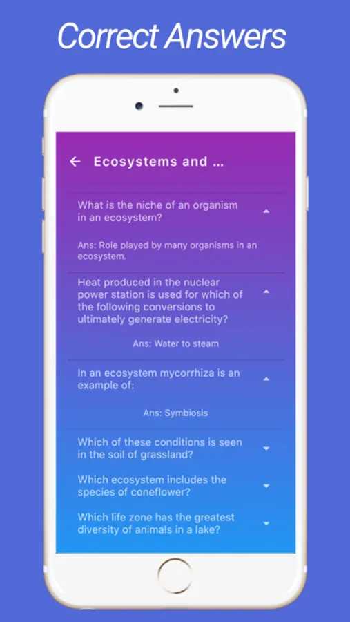 You can view the correct answers at the end of each biology quiz.