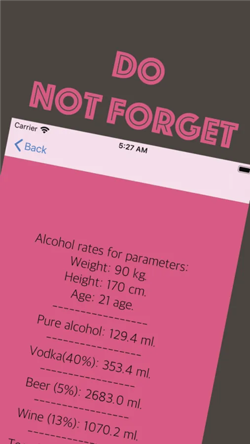 This application is not a game! And it is designed to protect you from excessive drinking! Using this application you acknowledge that you are aware of the harmful effects of alcohol on the human body.
