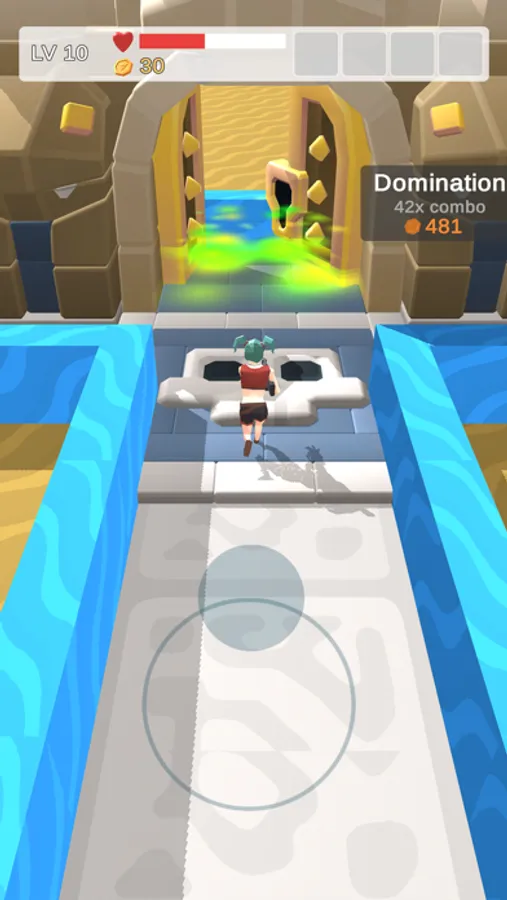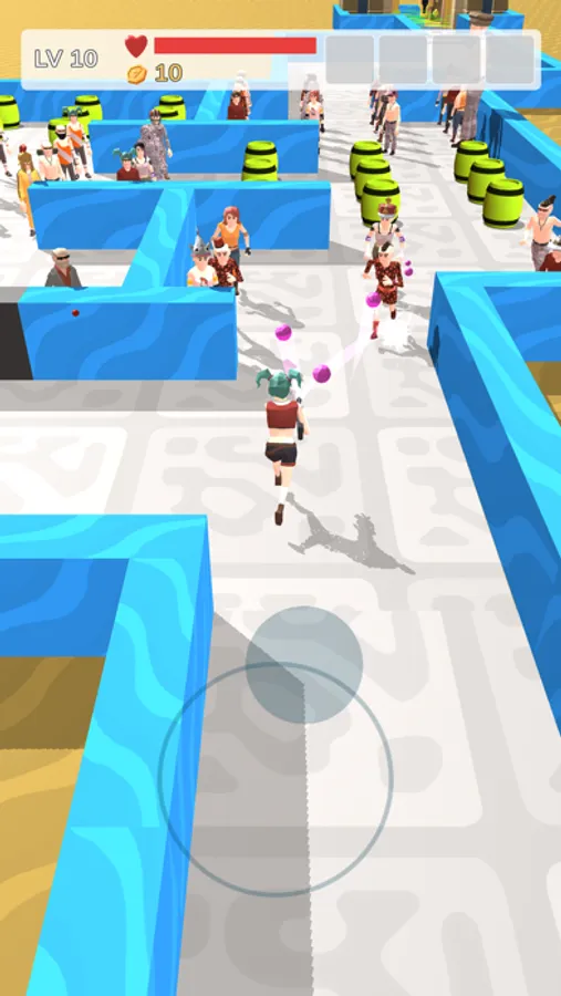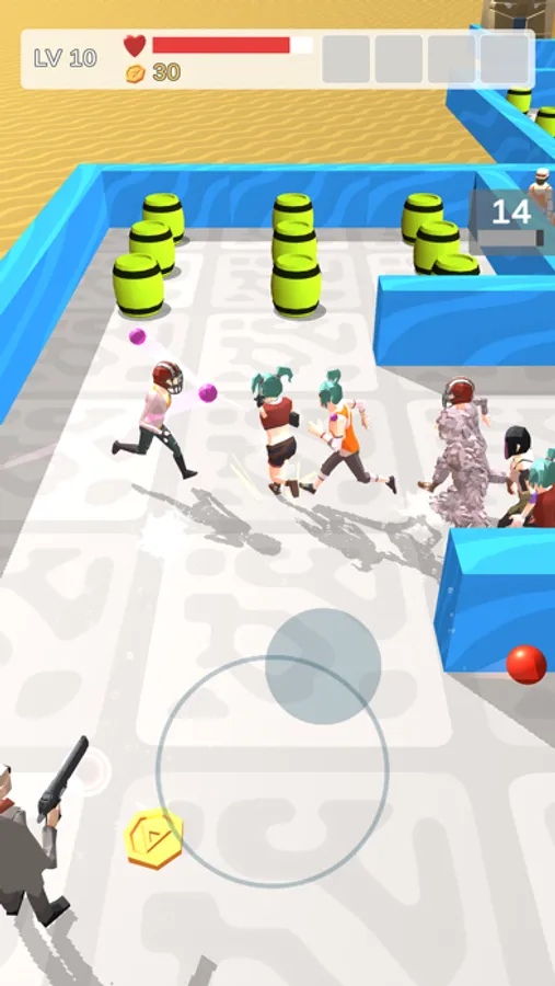 Just use the Joystick to move the girl where you want; Shooting is automatic!
