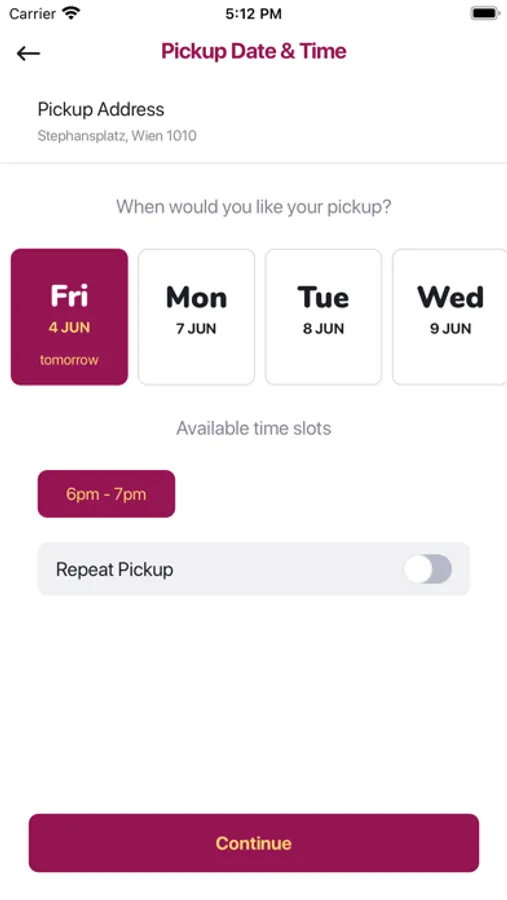 suchen Sie die von Ihnen gewünschte Abhol- und Lieferzeit.