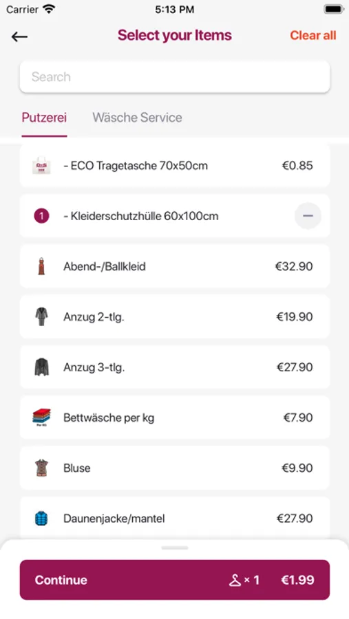 Unser Lieferant kommt zum ausgewählten Termin und holt Ihre Kleidung ab.