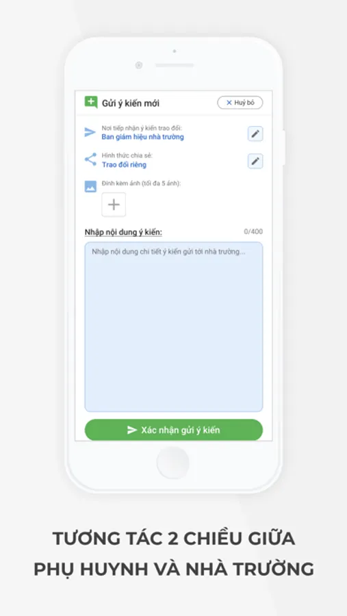 - Cho phép gửi ý kiến kèm cả nội dung lẫn hình ảnh tới nhà trường, giáo viên một cách thuận tiện và nhanh nhất.