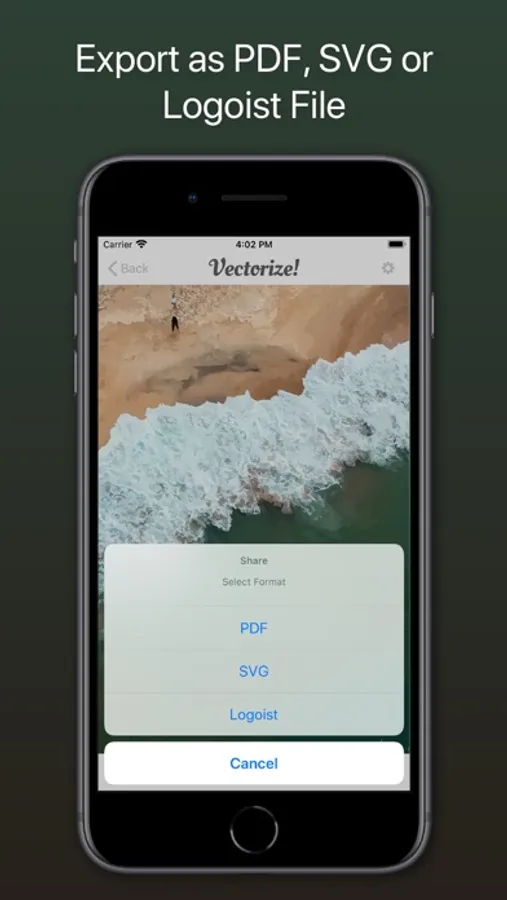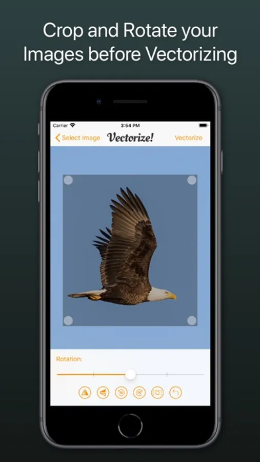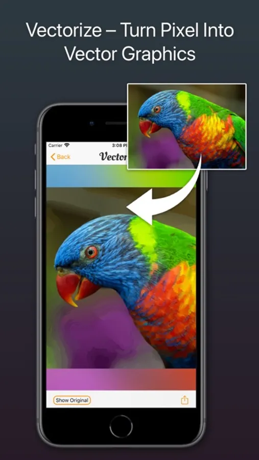 Converting a pixel-based-graphic (e.g. a photo, drawing, etc.) into a resolution-independent vector graphic with Vectorize! is quite self-explanatory: First, simply choose a file, or use your iPhone to take a picture – and then let Vectorize! do the rest. Using your iPhone to take a photo to directly import into Vectorize! is another very practical option at your disposal.