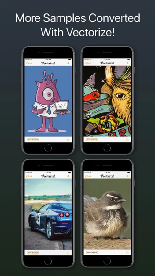 Vectorize! is the perfect tool for quickly and easily converting any pixel graphic into a resolution-independent, scalable vector format – and not just for iPhone and iPad, but also for Mac. No matter you’d like to convert, let’s say a low resolution JPG Logo, a comic, sketch, or even a complete photo – Vectorize! will turn your pixels into vectors. The starting material can then be upscaled at will.