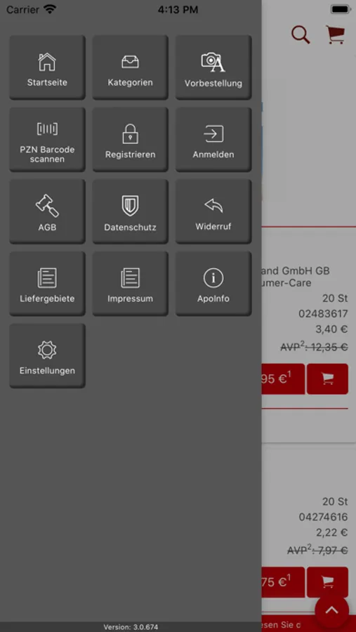 Hier finden sie rund um die Uhr Ihr gewünschtes Präparat in den Produktkategorien oder über die Suchfunktion nach Name, Indikation oder PZN. Die Ampelfarben zeigen Ihnen sofort die Verfügbarkeit an: