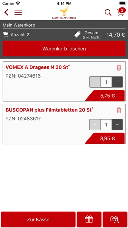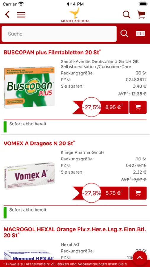 Mit unserer praktischen Rezeptscanfunktion können Sie auch ihre Medikamente vorbestellen und gegen Rezeptvorlage in der Kloster-Apotheke einlösen.
