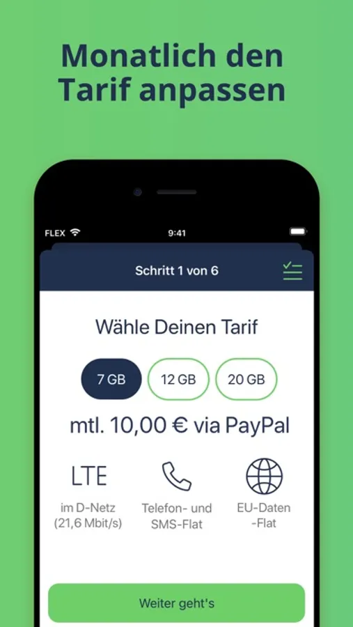 • 7, 12 oder 20 GB LTE-Tarif, mtl. anpassbar