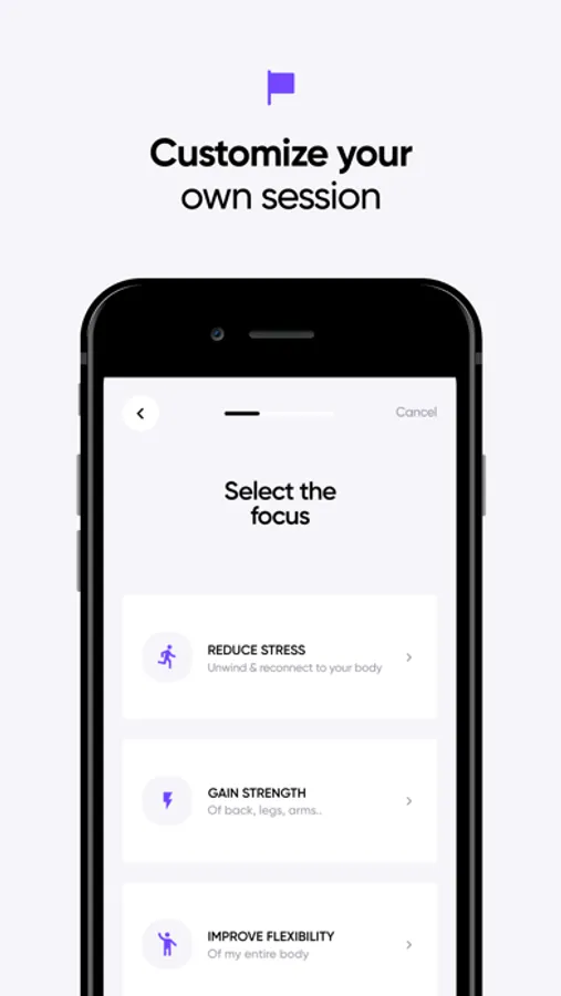 Enjoy personalized sessions, tailored to your needs! Yoga Coach creates your practices based on the following: