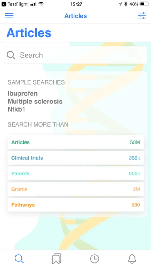 BioSeek Mobile helps you find and gives you access* to the most important science-related databases like PubMed, PMC ( PubMed Central ), and Medline, and more data from the National Center for Biotechnology Information ( NCBI ) at the U.S. National Library of Medicine ( NLM ), located at the National Institutes of Health ( NIH ), at one spot. Search more than 50 million articles, more than 300 k clinical trials, more than 2 million grants, more than 5 million patents, etc.