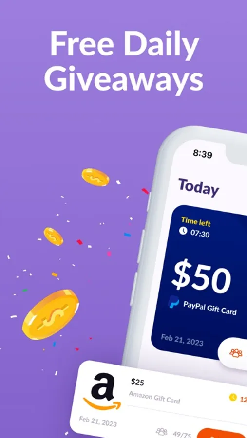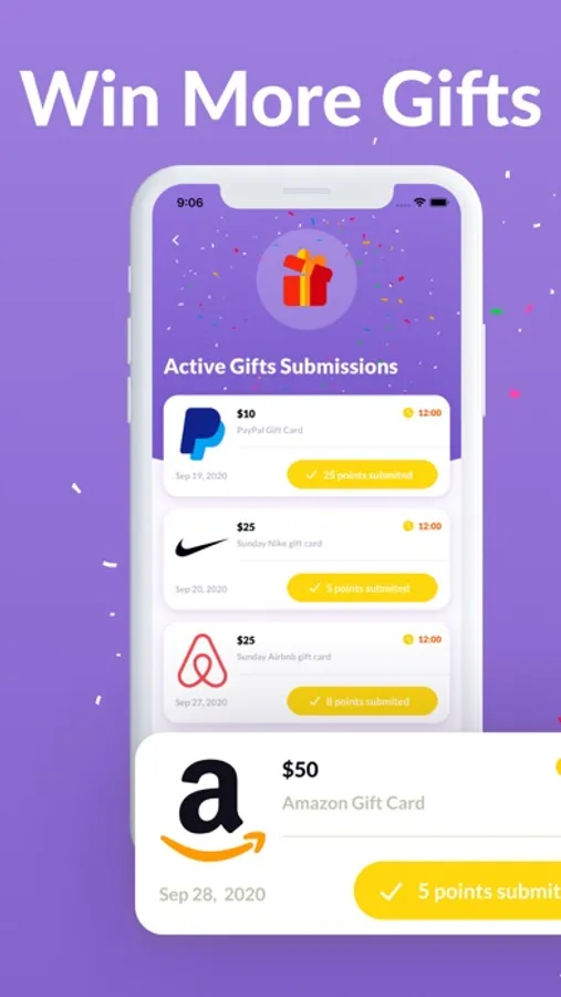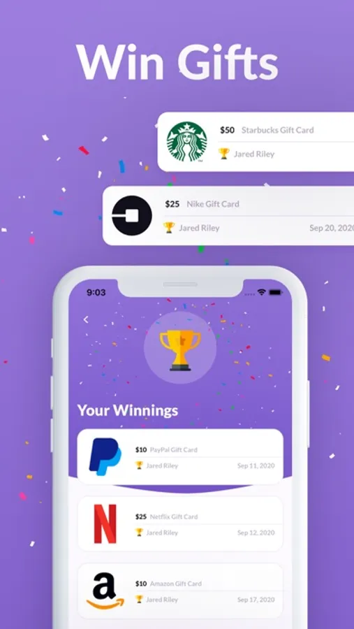 Here's how it works: Download the app for free, earn points for free, and submit them into daily giveaways to win exciting prizes like Supermarket gift cards, PayPal gift cards, Amazon gift cards, Netflix gift cards, Uber gift cards, Airbnb gift cards, and more.