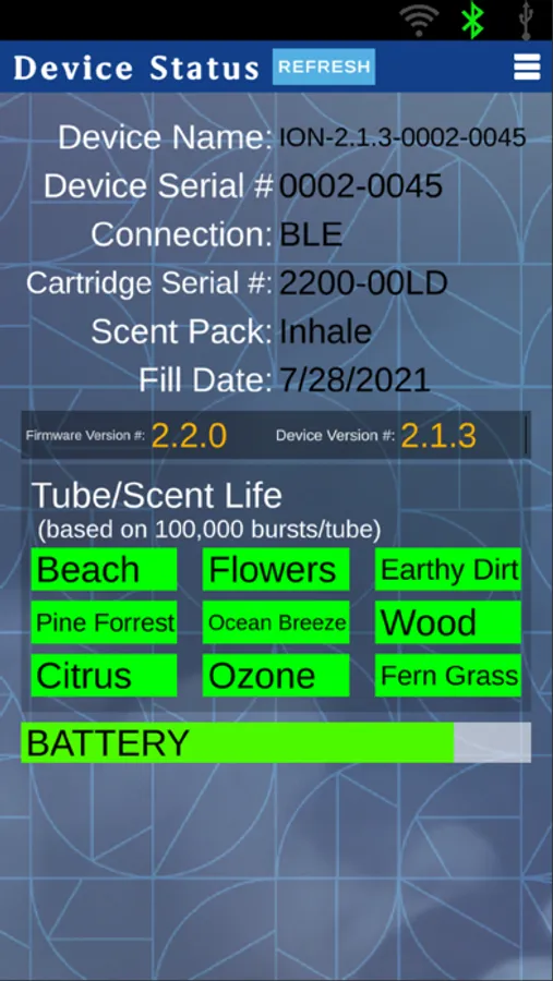 The ION Admin app lets OVR Technology's customers view the status of their ION scent device and cartridges, adjust and manually trigger the default scent intensity settings, as well as, update the device's firmware.