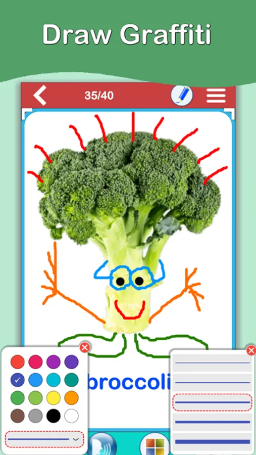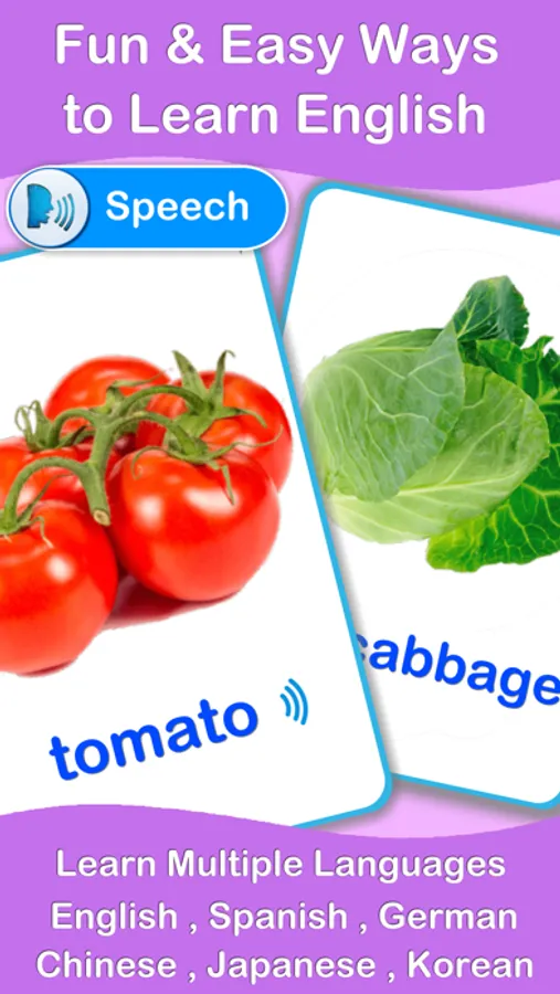 The app provides the best way to get started learning many kinds of vegetables which contains many cards, each word card are voice-enabled, and related words and pictures.