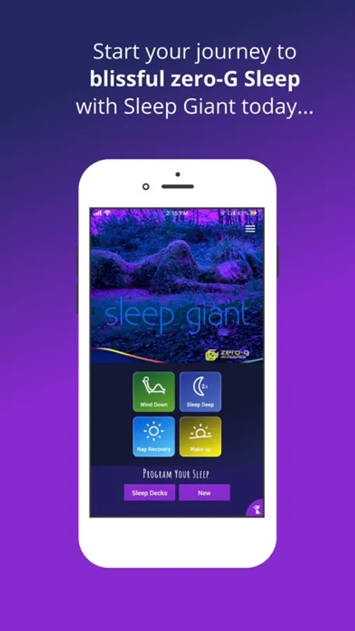Sleep Giant’s bio-harmonizing sleep programs - now conveniently available on iOS devices - offer sleep program libraries to address every facet of your sleep experience - with enhanced Deep Sleep, Wind(ing) Down, Wake Up and PowerNap programs.