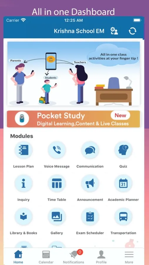 krishna School App is a platform which helps students, Teachers and Parents get connected. A common tool to interact, share & learn together via dynamic tools of this Web/App. Here, everybody is free to learn & grow via digitally connected campus of an institute which help an individual in daily activities like sharing digital materials, discuss on board, creating and participating in live tests, notice board, Calendar module and many more.