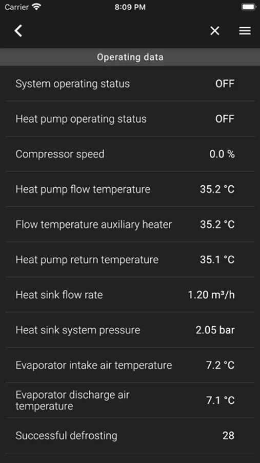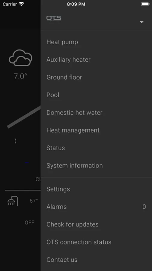 The app is used to operate an OCHSNER heat pump with OTS regulation.